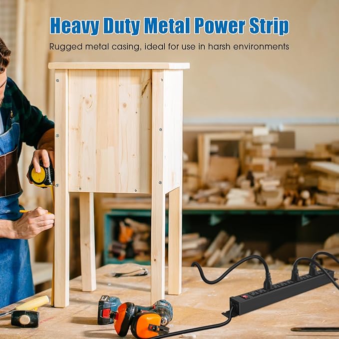 - 12 Outlet Mountable Power Strip: 12 outlets for more of your needs, with a 10 foot 14AWG power cord and 15A high current, max power: 60Hz/125V/15Amp/1875W. Package includes 4 mounting screws.