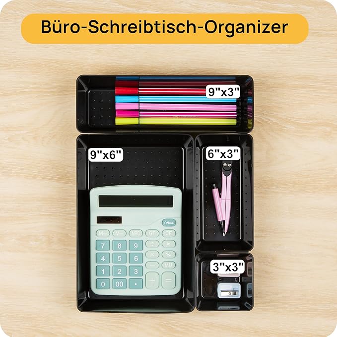 Vtopmart 25 PCS Office Desk Drawer Organizers Set, 4-Size Versatile Plastic Drawer Organizer Trays, Storage Bins for Desk Accessories Office Organizers and Storage, Bathroom, Makeup, Vanity, Black