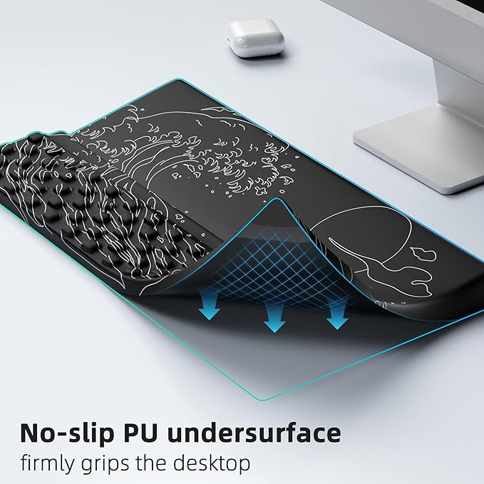 - Lycra Fabric Covering & No-slip PU undersurface: No-slip PU undersurface firmly grips the desktop. And Skin-friendly surface material enhances the comfort of use.