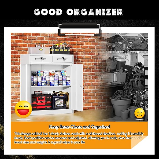 - [𝗨𝗣𝗚𝗥𝗔𝗗𝗘𝗗 𝗟𝗢𝗖𝗞𝗜𝗡𝗚 𝗦𝗬𝗦𝗧𝗘𝗠] -- Greenvelly metal storage cabinet adopts a new upgraded and safer three-point interlocking system. Multiple locked areas such as two drawers can store different tools or files. The lockable metal storage cabinet provides higher security for your important items and documents, making it perfect for use in offices, garages, and schools.