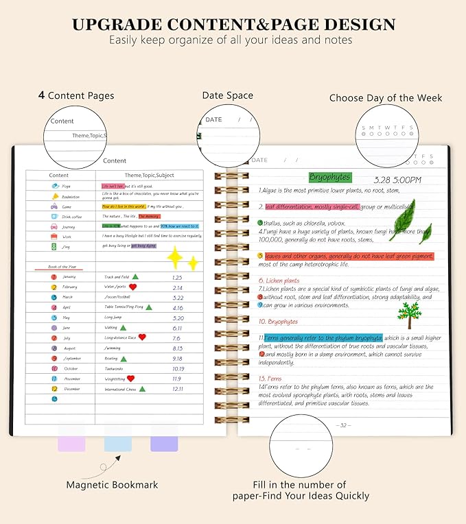 - 【360 Pages Thick Notebook Journal】Each lined journal 360 pages, offering enough space to write in.The new page design allows you to fill in the page numbers yourself. By using a notebook with page numbers and a 4-page blank table of contents, you can jot down important notes from various pages and note them in the front of the journal for easy and fast reference. Each page has a day and day of the week selection to help you keep track of the date.