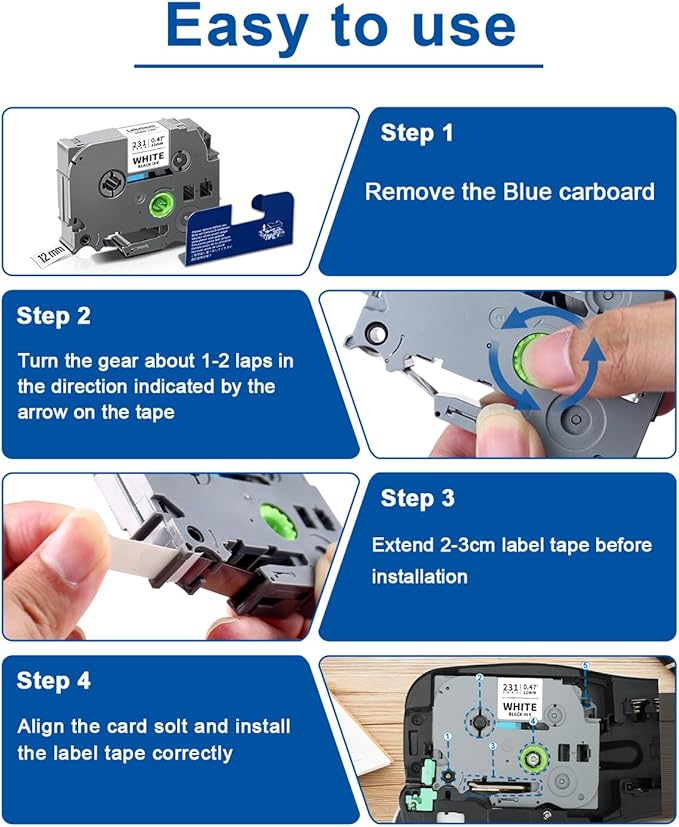 - Easy to use: These 18mm 0.7 Laminated White Ink on Black tapes comes with split backing design, the backing tape is split lengthwise in the middle for easy peeling, and all of Labelwell TZe TZ Tapes with the feature of water resistant, temperature resistant, fade resistant, oil resistant, abrasion resistant, chemical resistant, and no sticky residue