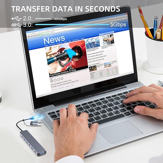 - 【5Gbps Data Transfer Speed】:This USB hub 3.0 syncs data at blazing speeds up to 5Gbps, which is more than 10 times faster than USB 2.0, fast enough to transfer an HD movie in seconds.
