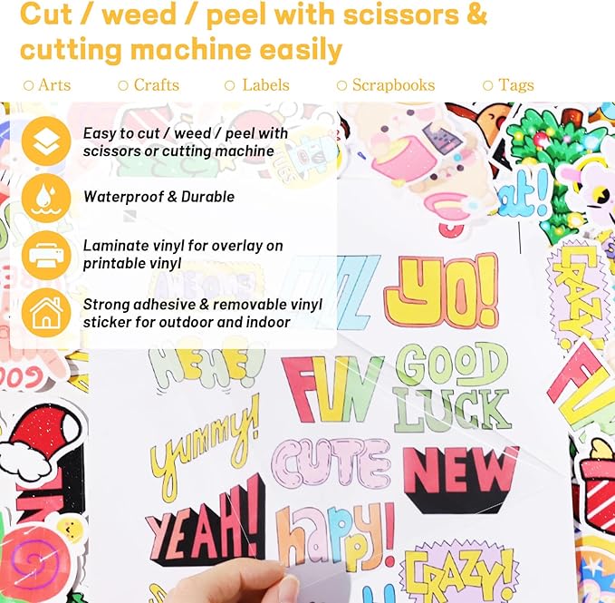 - Waterproof & Durable Protection - Designed for long-lasting use, our clear vinyl sticker paper, lamination sheets, and self laminating sheets provide excellent waterproof sticker paper protection. Ideal for both indoor and outdoor self laminate sheets applications,translucent sticker sheets laminating paper helps prevent fading, making it suitable for waterproof sticker vinyl, permanent vinyl, and even vinyl stickers on cups, jars, laptops, and more.