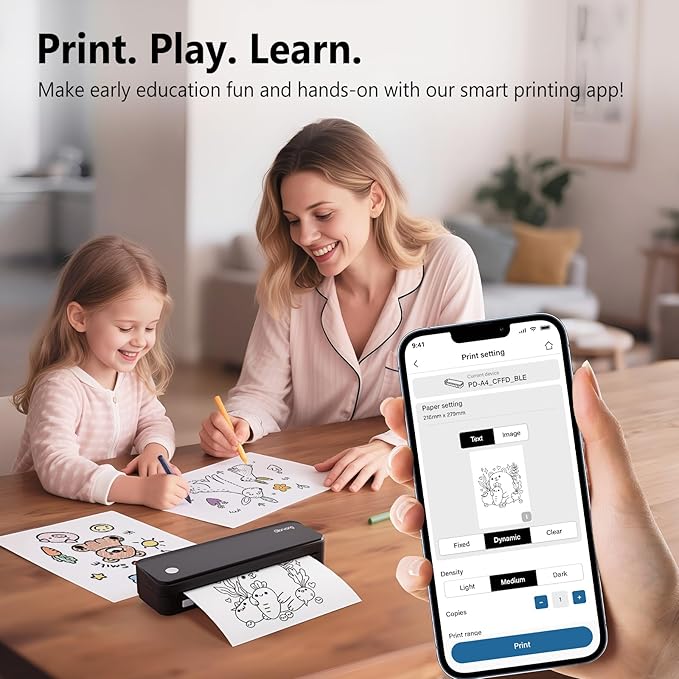 - Ultra-Portable Design - This printer measures 1.7’’ x 10.4’’ x 2.9’’, Weighs 1.75LB. Perfect for on-the-go printing during travels, work, or university, it easily fits into backpacks or briefcases. Ideal for emergency scenarios, contracts, office documents, and more.