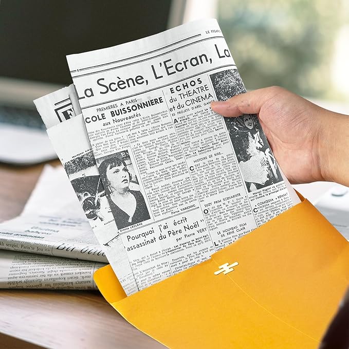 - Double Sealing: The yellow envelope is made from 100 gsm kraft paper, featuring tear resistance; it's reusable and durable with a metal clasp, reinforced eyelets, and a moisture-activated gummed seal on the envelope flap