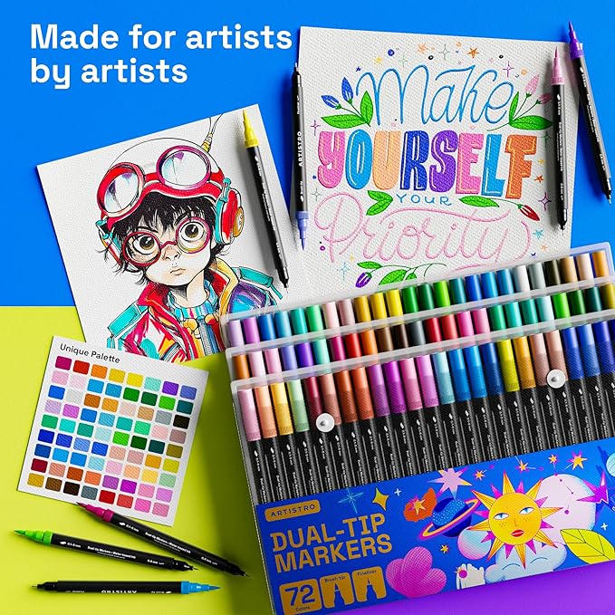 ARTISTRO 72 Brush Marker Pens Coloring Markers for Adults Brush Tip & 0.4mm Fineliner Pens Coloring Markers No Bleeding
