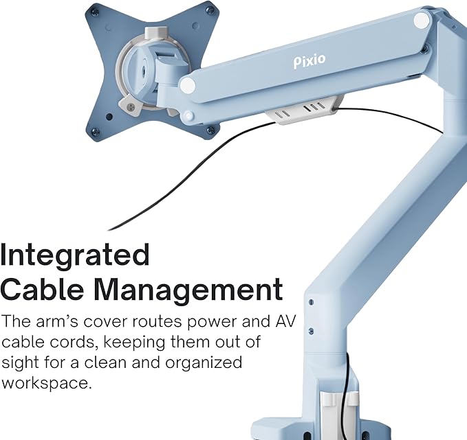 Pixio PS1S Wave Blue Single Monitor Arm Stand Desk Mount - Fits up to 32 inches Monitors and up to 19.8lbs. VESA Compatibility and Integrated Cable Management