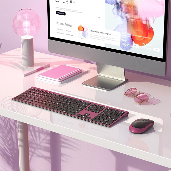 - ♥COMPACT AND SLIM: Ultra slim (5.5mm) keyboard looks more stylish and elegant. High-End Scissor Switch design provides a better tactile response and comfortable and whisper quiet typing experience