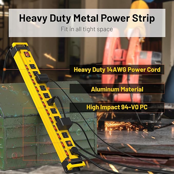 - Large Power Strip--AC 15A 125V 60HZ 1875W, perfect for charging various electric tools in the workshop,garage,commercial,shop,home,kitchen,factory,workbench, industrial, under cabinet, warehouse and office.