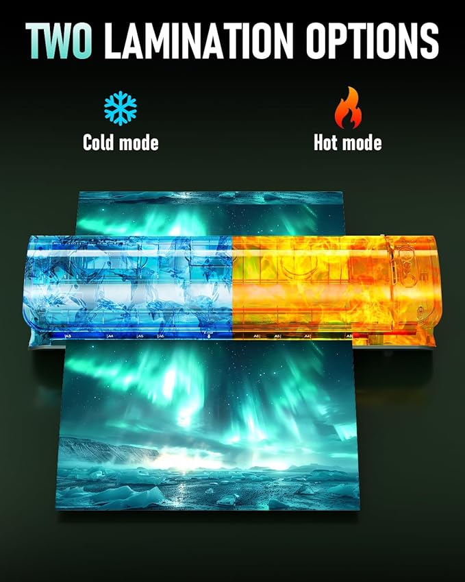 - Newly Upgraded 2 Hot Modes + 1 Cold Mode: The laminator machine 11x17 Hot Mode includes both 3mil and 5mil settings - 3mil for plain documents, photos, cards, and other film materials (pouch thickness less than 80 microns), and 5mil for thin/thick paper (pouch thickness 85-125 microns). In addition, the cold mode requires no preheating, making it ideal for document materials that are sensitive to high temperatures