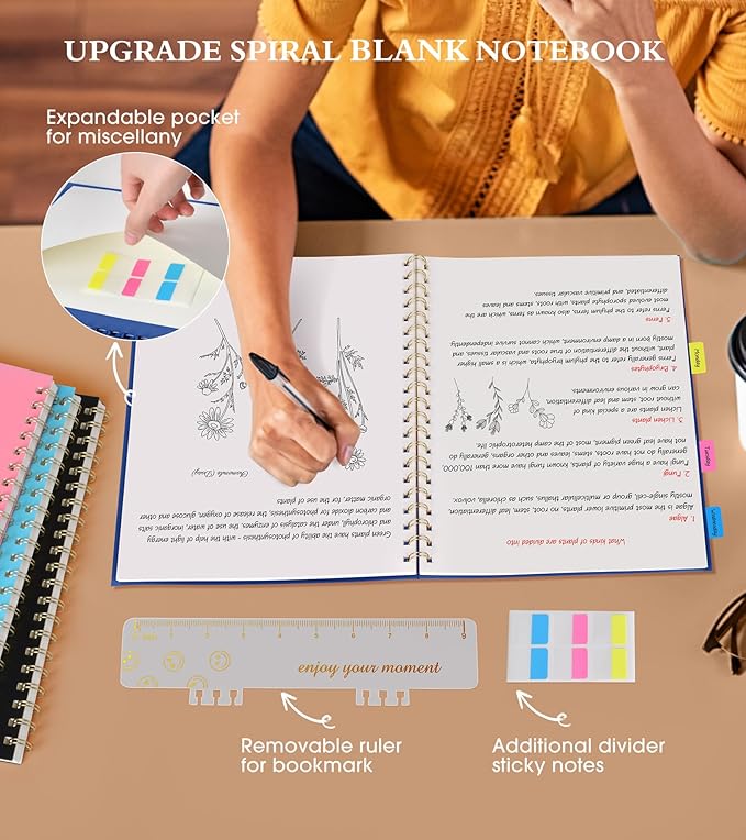 - 【A4 Blank Spiral Journal Notebook】 Large a4 size 8.5"x11" blank notebook, standard 7mm space classic sketch book journals. The professional sturdy water-resistant plastic hard cover will protect your notebooks to last for years, which has oil-resistant and anti-bending properties, effectively protecting the internal paper of the journal and provides a comfortable writing surface.
