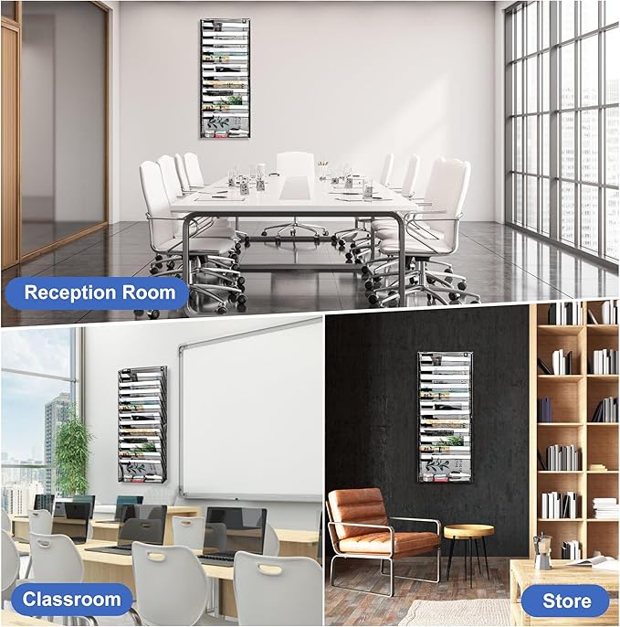 - All-in-One Mail Center: Mail organizer wall mounted stores A4 files, catalogs, outgoing mail. Doubles as brochure display for clinics/workshops. Converts clutter to order.