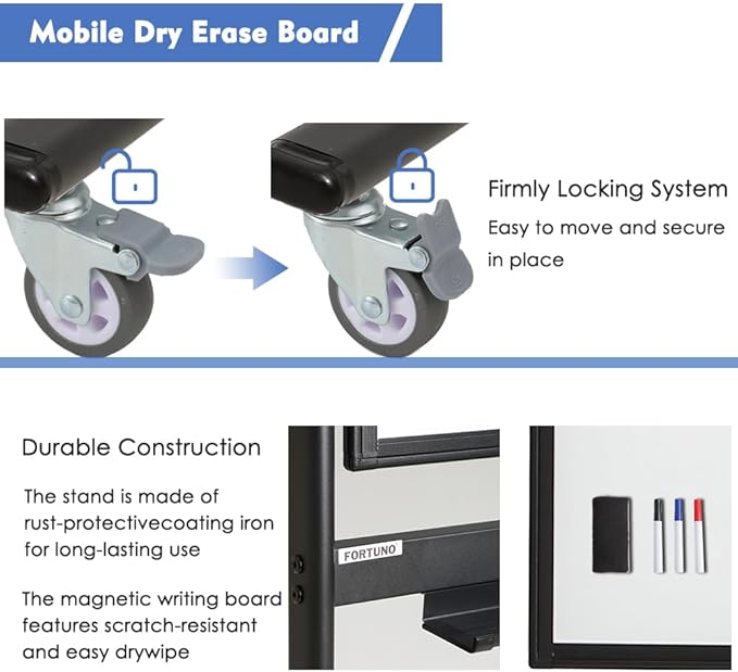 - 【ACCESSORIES & SATISFIED SERVICE】The package also comes with 1 magnetic eraser, 3 markers and a large pen tray. As your satisfaction is of the utmost importance to us. FORTUNO is committed to offering you premium products and caring service. Please feel free to contact us if you have any questions about our products