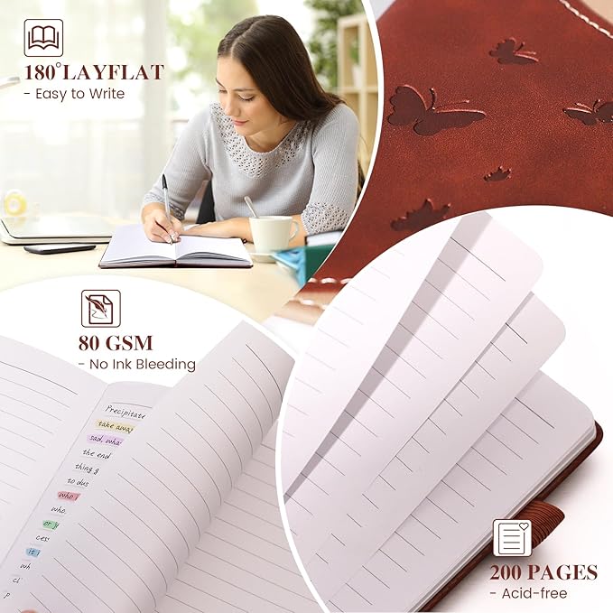 - 【180° Lay Flat Design】: Classic sturdy covers with Acid-free paper can be layed flat to 180 degree. After relaxing the binding a bit, it did lay perfectly flat, It is a comfortable writing experience.