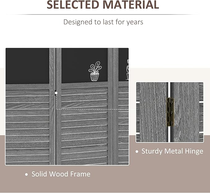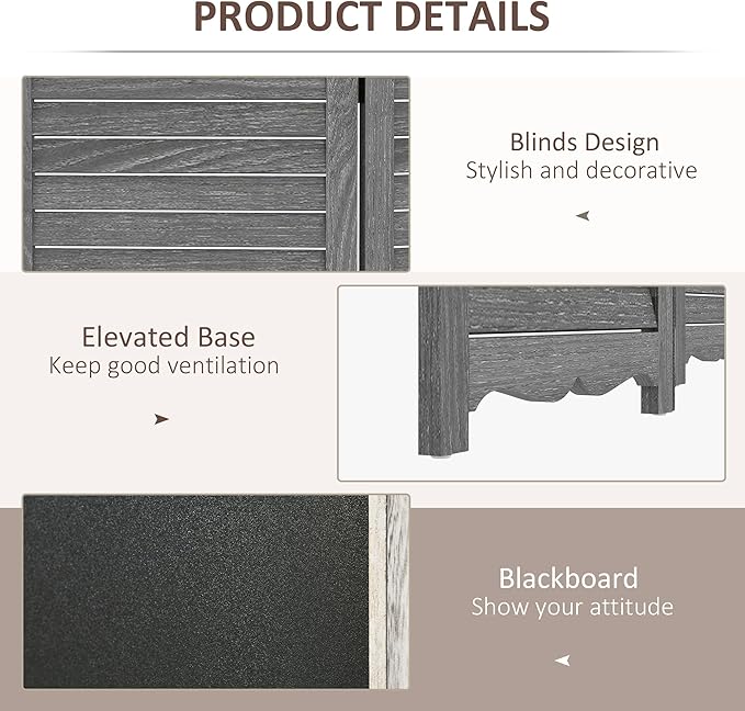 NicBex Room Divider 4 Panel Room Dividers with Black Boards Partition Room Dividers and Folding Privacy Screens 5.5 FT Wall Divider for Home, Office, Room Separation,63.75"W x 0.75"D x 67.75"H,Gray