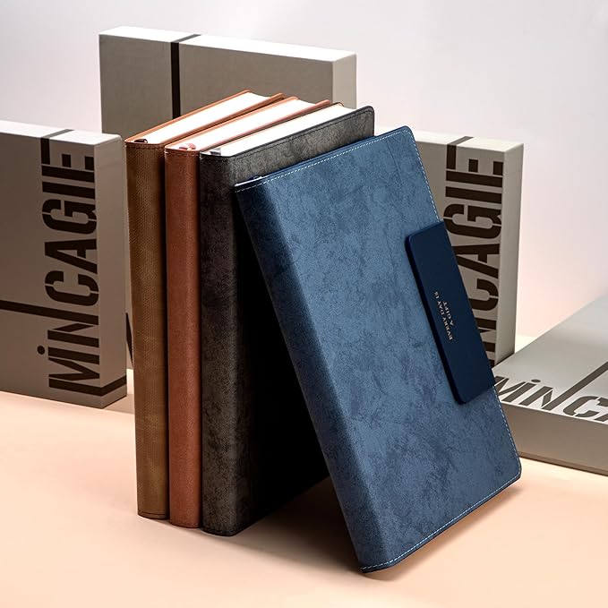 - Sleek Functionality: A magnetic square closure replaces traditional straps, ensuring secure closure and doubling as a hidden pen loop. Perfect for on-the-go use with its B5 large notebook size and 180° flat-lay design.