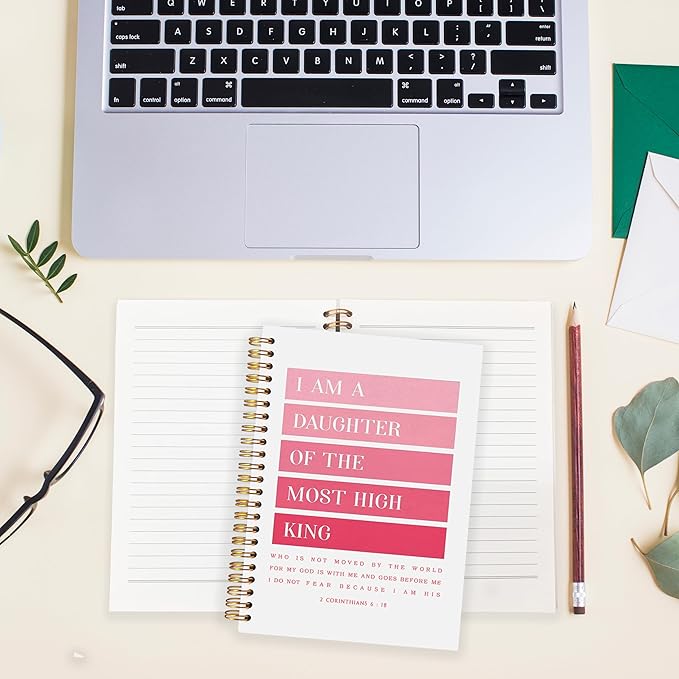 BearCake Pink I am Daughter of the Most High King Christian Notebook Journal, Christian Gifts for Women, Bible Notebooks for Note Taking, Bible Journaling Notebook, Hardcover Spiral Notebook 5.5x8.3