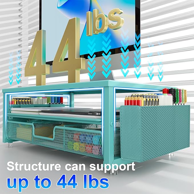 - 【Improved Work Efficiency】: The monitor riser comes with a sliding drawer and two pen holders. It accommodates various office desk items, saving space. It helps you quickly identify the contents of each compartment, doubling your work speed.