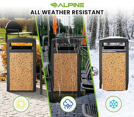 - Robust Construction: Built with a powder-coated steel lid and frame, this outdoor commercial trash can withstands all weather conditions, ensuring long-lasting durability and a clean, professional appearance.