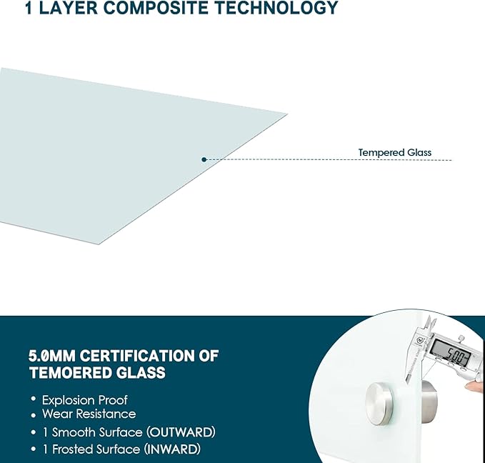 - 【Tempered Glass】: Transform your office space or home with a luxurious frosted glass dry erase board who resists stains and ghosting. Our advanced frameless design turns your work area into a modern space, which is bound to catch your eyes. Clear styles allows you to hang calendars, maps, signs, and more behind your board and write over them on the glass surface