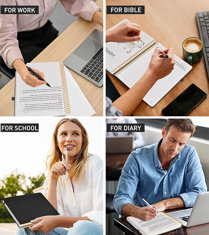 - 【Wide Usage】 Hardcover spiral bound notebook ideal for school, office, home, work, college, business, students, adults, travelers. Suitable for study, diary, journaling notebooks, plan, drawing, sketching, journals for writing, personal daily notebook, travel journals, school work notebooks or for note taking in college class or meeting. Our big leather notebook also a great gift for moms, dads, teachers, classmates, co-workers, wives, husbands, friends, daughters, sons and granddaughters.