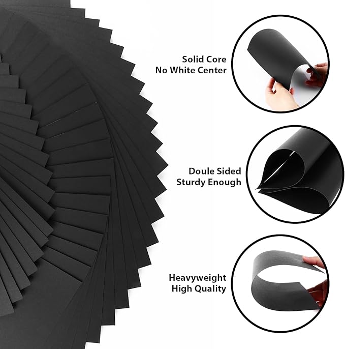 - 【Black Cardstock Paper】:Our black card stock is a double-sided, acid-free, eco-friendly, high quality thick cardstock. Measuring 8.5 x 11 inches, a total of 200 sheets can meet all your daily needs.