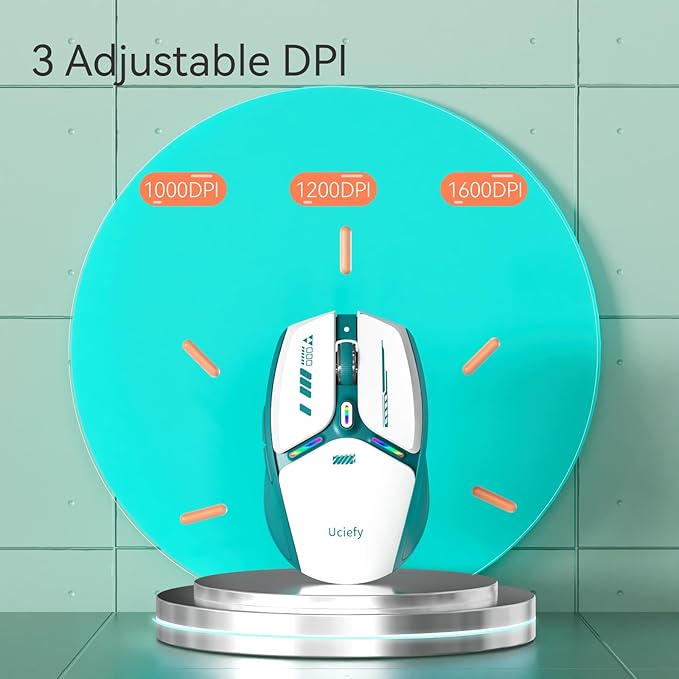 - 3 ADJUSTABLE DPI: Press the button behind the scroll wheel to switch between three adjustable DPI settings (1000, 1200, and 1600), These settings provide a powerful and reliable wireless connection with high precision, making it more smoother connection without being obstructed.