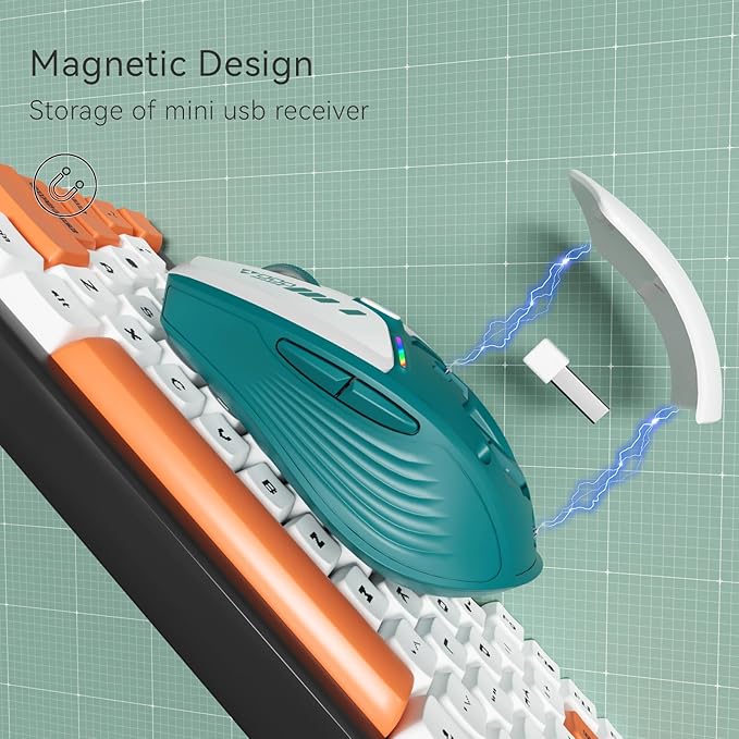 - MECHA-STYLE DESIGN: Classical color scheme, cool LED light, and disassembly parts (magnetic case and nano receiver) make it a cool looking mecha-style wireless mouse. Take apart the mouse cover and take the USB receiver out, it's like dismantling the mecha parts. Enjoy the technology sense with this optical mouse.