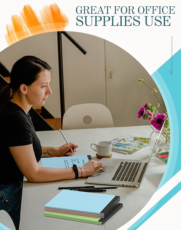- 【LINED LEGAL PADS】- Each colored legal pads measures 8.5” x 11" and contains 30 sheets per legal pad, which perfect for writing notes, letters, thoughts, reminders lists and more. Quality lined paper pads 8 1/2 x 11 both sides with 11/32" wide lines format provides plenty of space for your notes. Colored note pads 8.5 x 11 wide ruled pads of paper improve the efficiency of your note-taking.