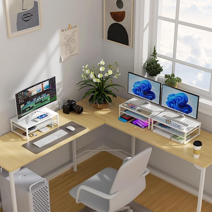 gianotter 2-Tier Metal Monitor Stand Riser, Desk Accessories & Workspace Desk Organizers, Office Desk Storage Organizer for Office Supplies (White)
