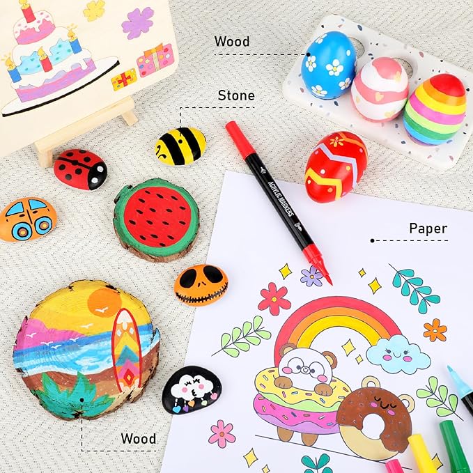 - 【Great Gift Idea for Creativity Enthusiasts】: Unlock the imaginative potential of kids, teens, girls, and boys with our acrylic markers – an ideal and unique gift choice. Whether it's birthdays, Easter Day, Halloween, Christmas Day, Valentine's Day, Thanksgiving Day, New Year, or any special holiday, these markers make for a perfect present that sparks creativity and artistic expression.