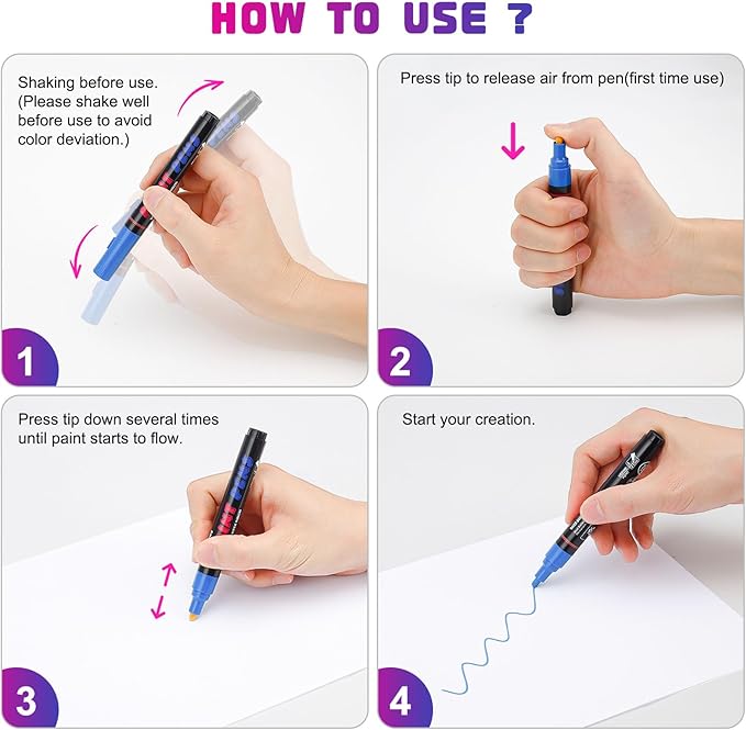 - Quick-Drying for Instant Gratification: Get your projects completed in record time with our quick-drying markers. Say farewell to waiting for paint to dry, as our markers dry rapidly, allowing you to move on to the next step or project without delay. This feature is perfect for crafters and artists who value efficiency.