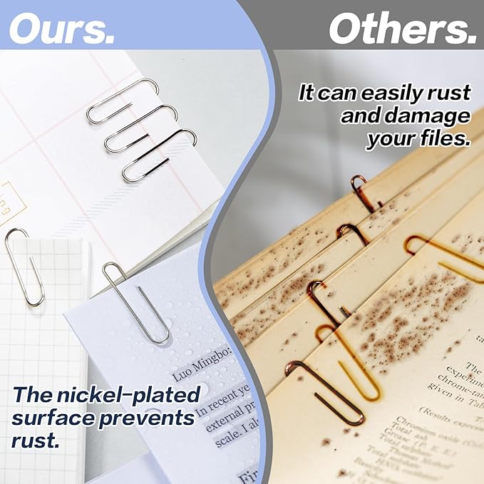 - 【Package Included 1000Pcs】- Contains well-packed 10 boxes of jumbo size non-skid paper clips, 100 pcs each.