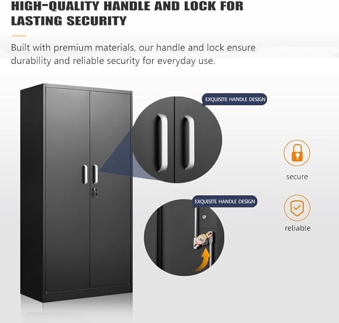 Metal Storage Cabinet with Adjustable Shelves, Garage Storage Cabinets with Doors and Shelves, File Cabinets for Home Office, Kitchen Pantry Cabinet, 71'H, Black