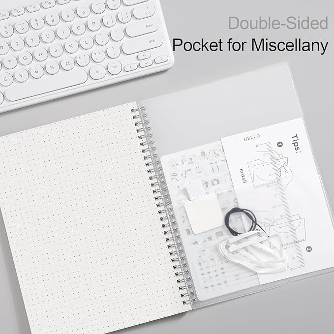 AHGXG Bullet Dotted Journal - Dot Grid Spiral Notebook B5, 140 Pages, 100 GSM Thick Paper, Waterproof Plastic Cover Journals for Bullet Journaling, Sketching, 7.6" x 10", Transparent