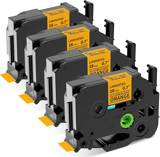 - [Package] 4 Pack Compatible with Brother P touch tze tz tape 18mm label tape TZe-B41 (TZeB41/ TZ-B41/ TZB41), Laminated tape black on fluorescent orange. Width-3/4 inch 18mm, length- 26.2 feet (8 m) for each tape.
