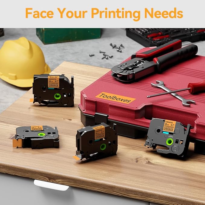 - [Wide application] Compatible with Brother P touch 3/4 inch 18mm TZe label tape great ideals for indoor and outdoor such as business, home, office, shop, warehouse, etc. For scene labeling like factory parts, kitchen food dates, shelving functional regions, File folder tag and more your print needs.