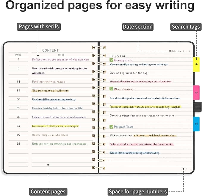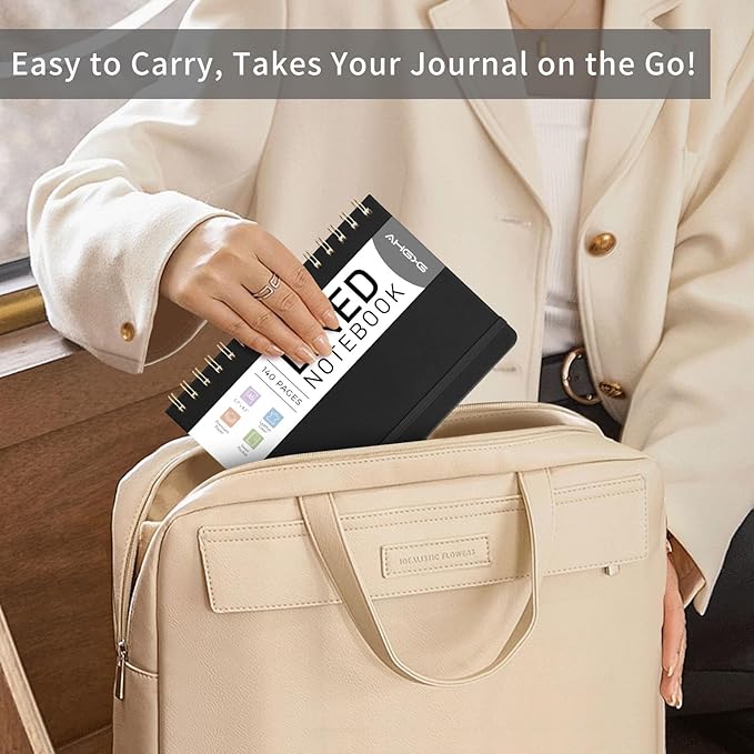 - ORGANIZED AND PRACTICAL NOTEBOOK: Our lined spiral notebook features 140 numbered pages and 4-page blank table of contents. In a medium A5 size 5.7" × 8.3", providing ample writing space while remaining lightweight and easy to carry