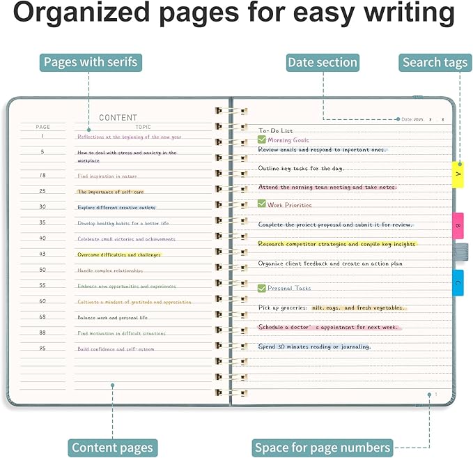 - MULTIPURPOSE NOTEBOOK: Ideal for travel, school, home, and office use. Our lined notebook is perfect for journaling, note-taking, personal daily journals, travel journals, work notebook, Bible study, and planning or for taking notes in college classes or meetings. It makes a thoughtful gift for friends, family, classmates, and colleagues