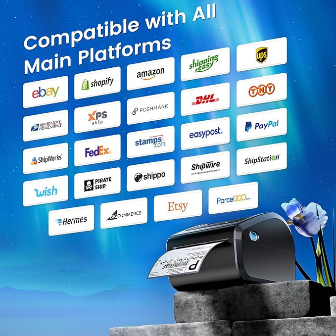 - [Widely Platform Compatibility] - D450BT usps label printer compatible with all major shipping platforms and sales platforms such as USPS, UPS, eBay, FedEx, Amazon, Ebay, Shopify, USPS, UPS, Esty, PayPal, Poshmarkand so on. Ideal for your online small business for shipping packages, Let’s start your small business with this desktop label printers