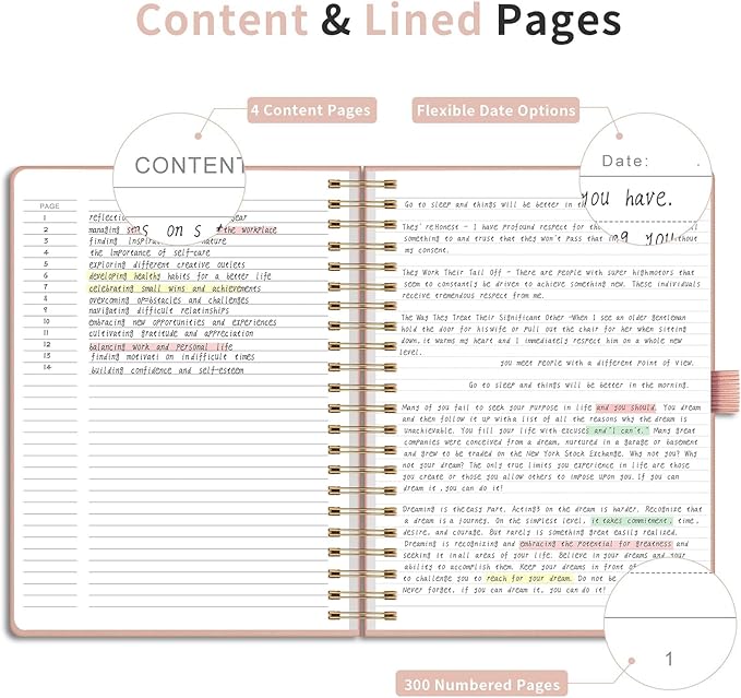 EMSHOI Spiral Notebook College Ruled, 300 Numbered Pages, A4 Large Hardcover Leather, 100 GSM Thick Lined Journal for Women Men Work Writing Journaling Note Taking, 8.27" x 11.2", Rose Gold