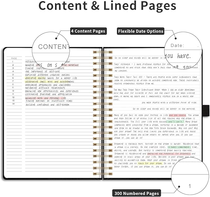 - PU Leather Hardcover & Strong Twin-Wire Binding: The notebooks feature premium vegan leather covers in various colors to meet your classification needs and protect pages; Sturdy spiral binding makes it easy to turn pages (180° lay flat, 360° flip) and tear off unwanted pages, suitable for right and left-handed users
