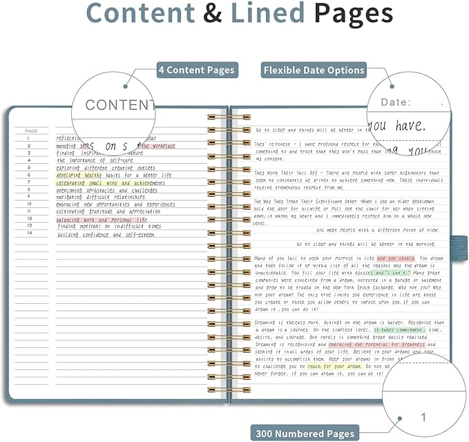 - 300-Page A4 College Notebook – EMSHOI's 150-sheet (11.2"x8.27") lined journal features 7mm spacing for neat, organized notes, consolidating all your ideas in one durable hub