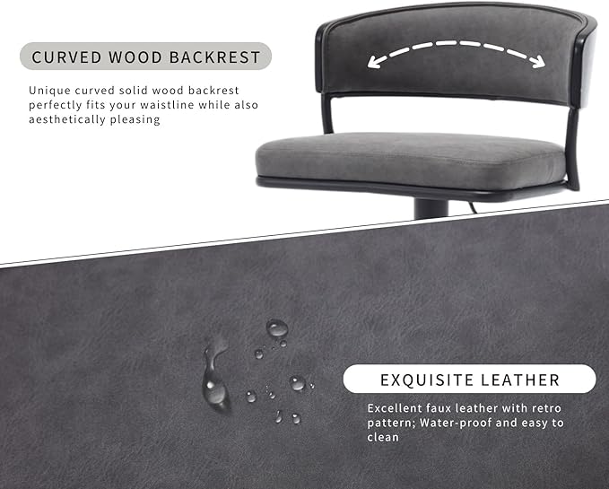 - 🍺 [Easy to Assemble]- Our grey leather bar stools are equipped with installation instructions, quality hardware and installation tools, super easy to install. No need to worry if you are not good at DIY projects!