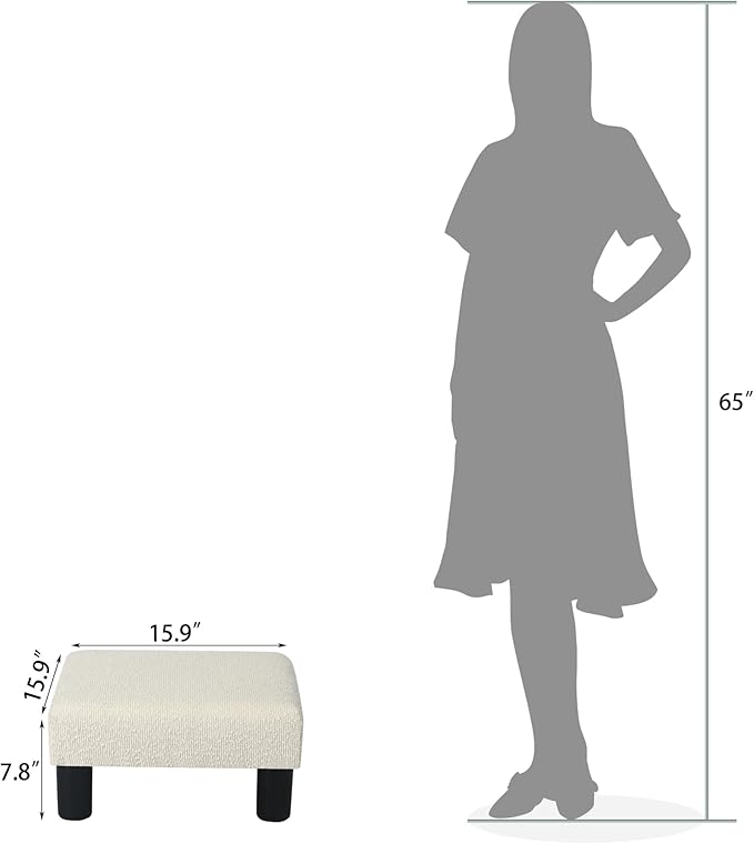 - Compact & Convenient Size: Measuring 15.7” x 15.7” x 8”, this small ottoman foot rest is designed for tight spaces, perfect for use under your desk or as a foot rest for chair. Its lightweight design makes it easy to move, ensuring it fits wherever you need it—whether as a small foot stool or as part of your living room setup.