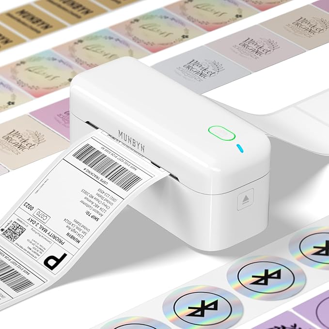 - Integrated AI for Enhanced Performance: The Munbyn RW402B wireless thermal printer integrates advanced AI to refine print head performance, ensuring both print and delivery accuracy. This versatile printer can even handle photo printing with its dedicated picture printer model. Perfectly supporting not only shipping label printing, but also home organization stickers, branding decoration stickers, and much more(It is not a color printer, only prints black.)