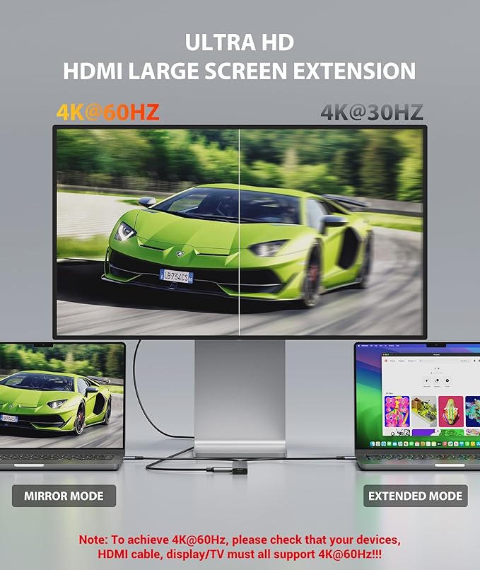 - 4K@60Hz Immersive Display: Simply connect to an external monitor via the 4K HDMI port of the USB C hub multiport adapter to see all in sharp and glorious detail. NOTE: Pls ensure that your device supports video output via the usb c port.