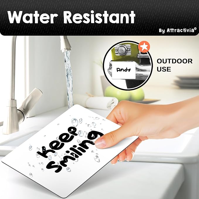 - Strong Magnetic Hold: Our dry erase magnets feature a powerful 0.02 inch thick magnetic back for instant and secure adhesion to any metallic surface, whether flat or slightly curved. Easily attach our dry erase stickers labels and remove without residue, ensuring a firm grip even on rounded surfaces.