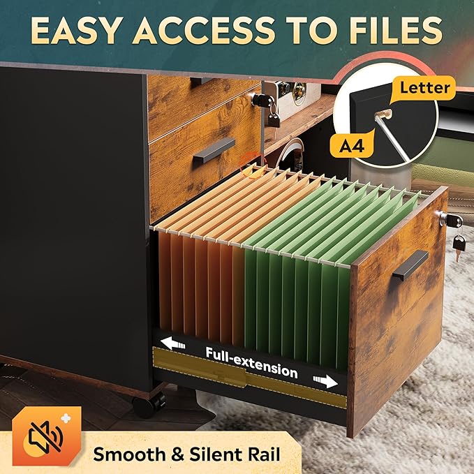 - Ample Storage Space: Equipped with 3 spacious drawers and 2 open shelves, the top 2 small drawers provide ample storage for smaller items. The bottom drawer accommodates hanging files in Letter and A4 sizes, and it fully extends for easy file access.